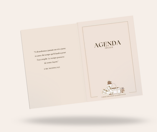 L'Agenda Minceur est un produit papier, conçu pour vous offrir une expérience de pleine conscience et un suivi manuel de vos progrès, ce qui renforce votre engagement et votre concentration.